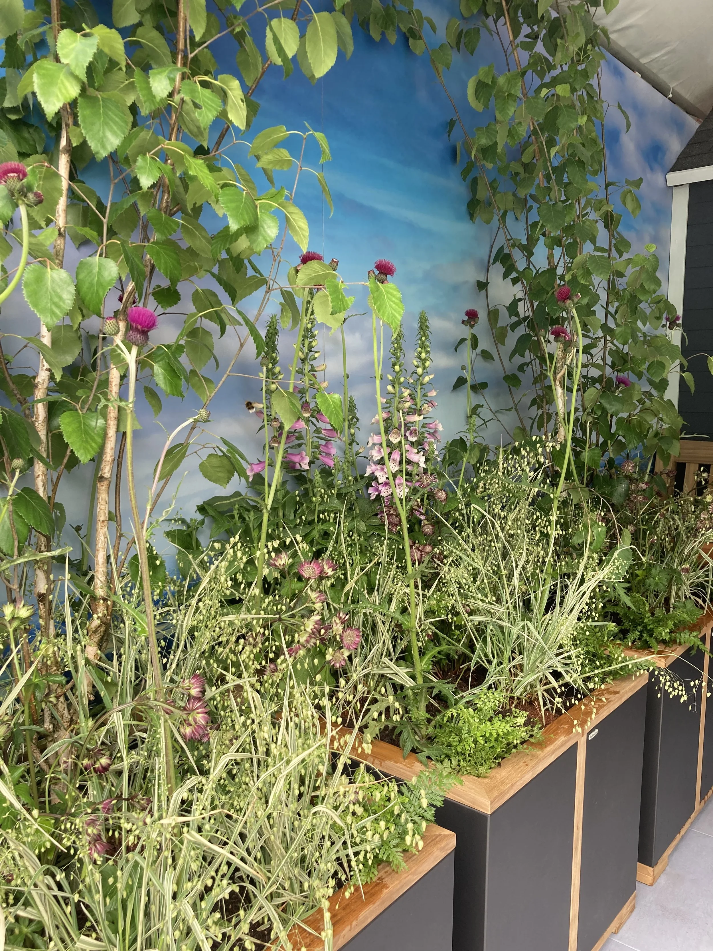 Award winning planting design for the Barlow Tyrie trade stand at RHS Chelsea Flower Show 2022 and 2023